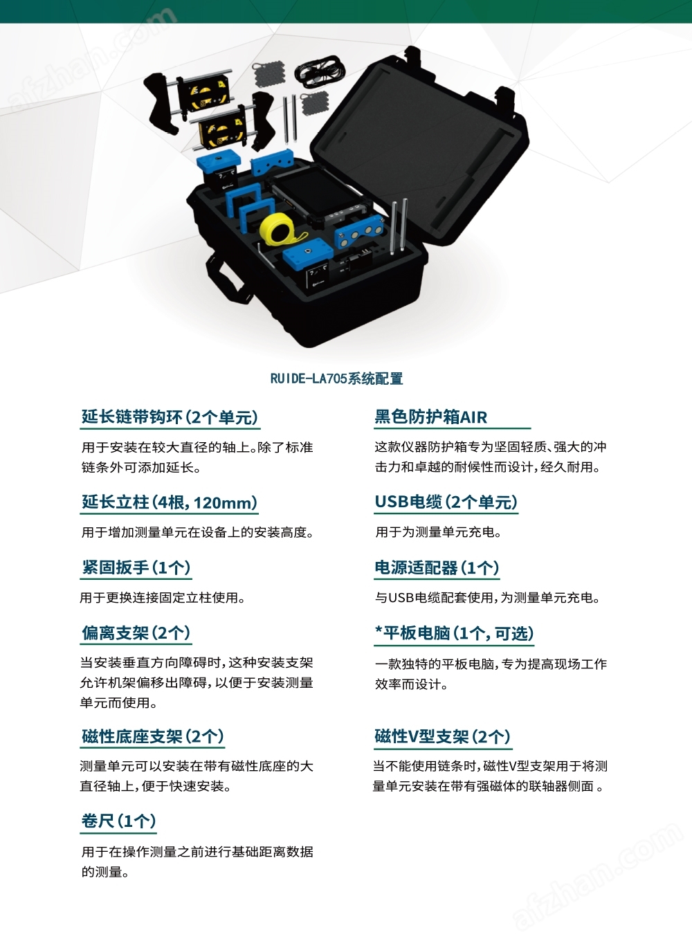 瑞德RUIDE-LA705专业系统旨在消除大范围的旋转机械(压缩机、发电机、涡轮机等)的对中问题,该系统将所有基本功能与不同的联轴器类型相结合,并添加了强大的轴对中工具所固有的高精功能。