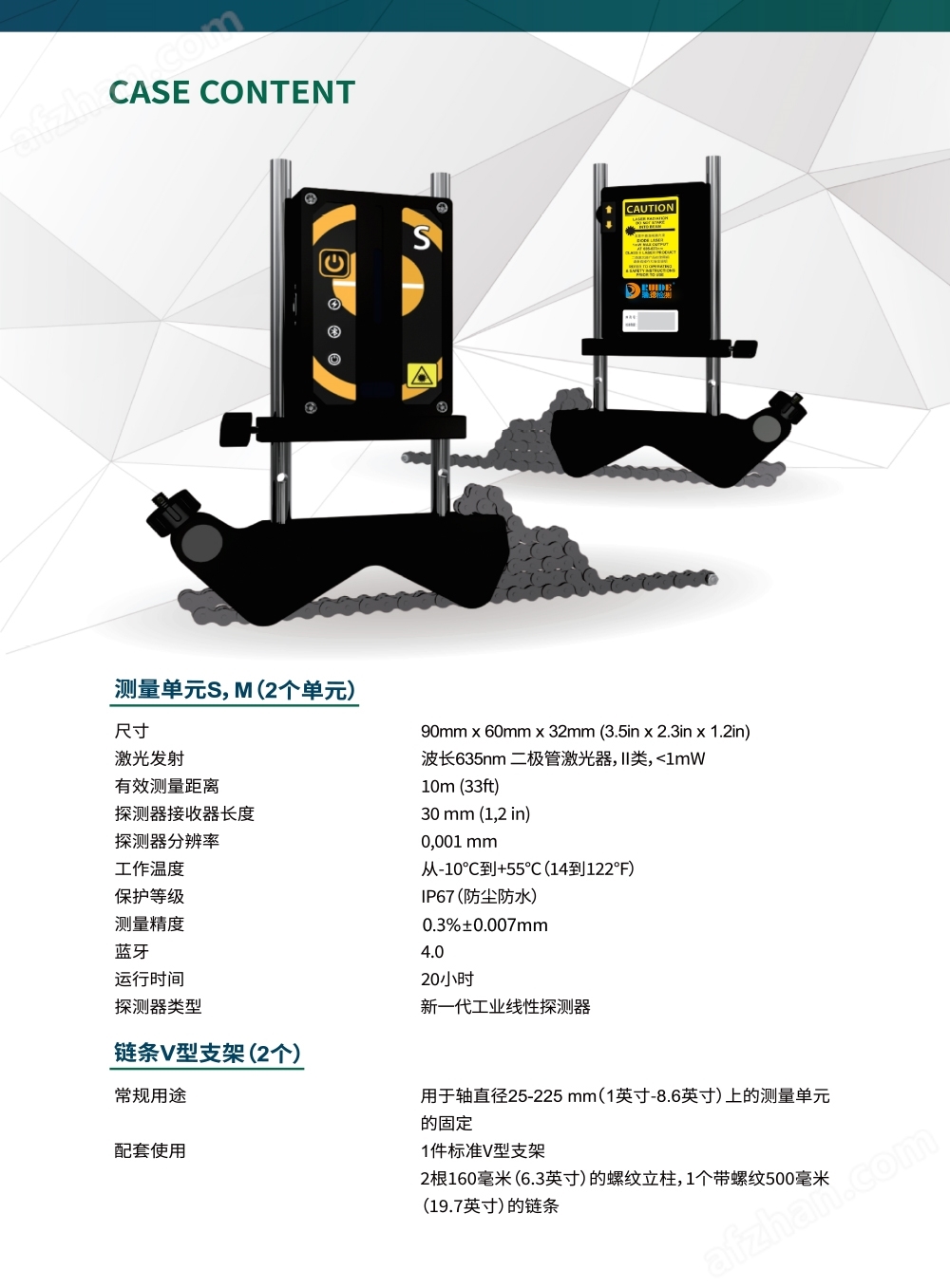 激光发射:波长635nm二极管激光器,II类,<1mW